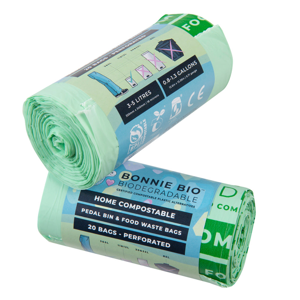 This internationally certified "Home Compostable" refuse bag range offers bags of ideal sizes from wrapping sandwiches or collecting and disposing of pet organic waste, collecting general rubbish in the car, disposing of used nappies etc (2-2.5L), mini pedal bin bags, disposing of bigger nappies or sanitary wear waste (3-5L), kitchen counter organic / natural / food waste collection or office bin basket (11-12L), kitchen swing bin or tall pedal bins (30-32L) or the 85L for garden refuse / grass cuttings. In the right environment / conditions, these bags can disappear in as quick as 15 days back to compost. A sure way to prevent adding to the global plastic pollution problem.