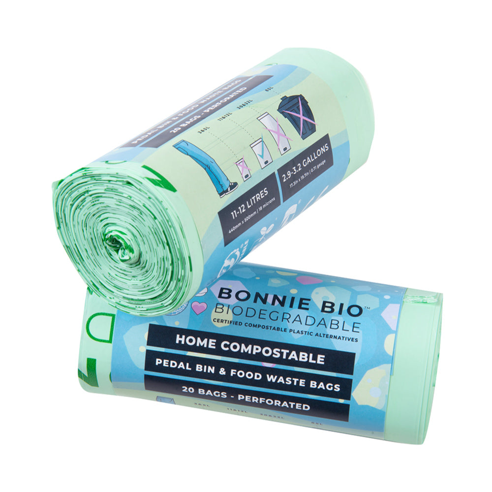 This internationally certified "Home Compostable" refuse bag range offers bags of ideal sizes from wrapping sandwiches or collecting and disposing of pet organic waste, collecting general rubbish in the car, disposing of used nappies etc (2-2.5L), mini pedal bin bags, disposing of bigger nappies or sanitary wear waste (3-5L), kitchen counter organic / natural / food waste collection or office bin basket (11-12L), kitchen swing bin or tall pedal bins (30-32L) or the 85L for garden refuse / grass cuttings. In the right environment / conditions, these bags can disappear in as quick as 15 days back to compost. A sure way to prevent adding to the global plastic pollution problem.